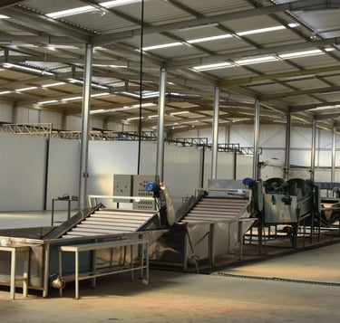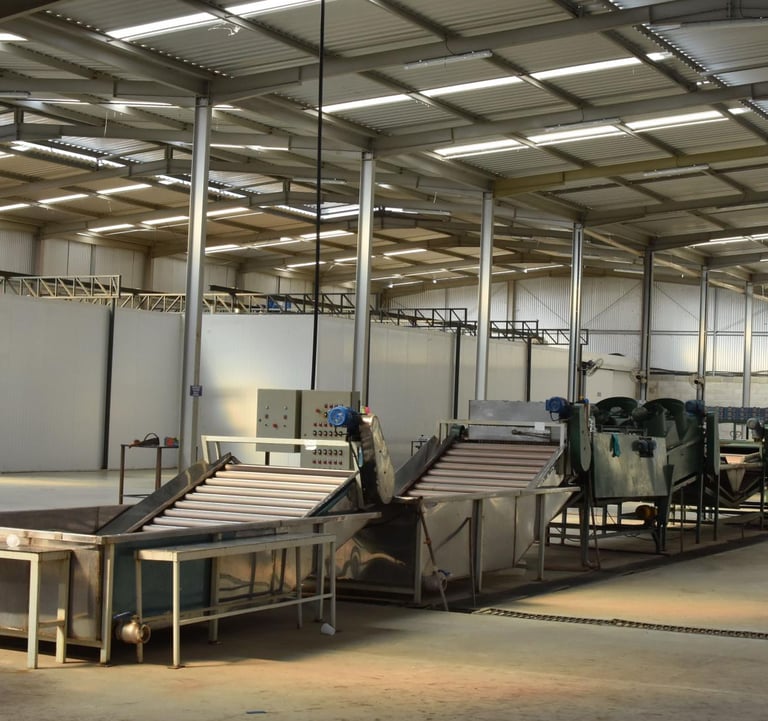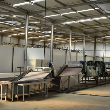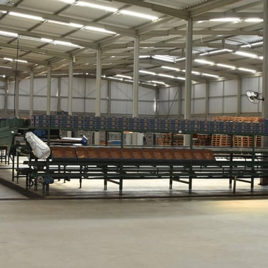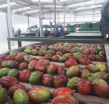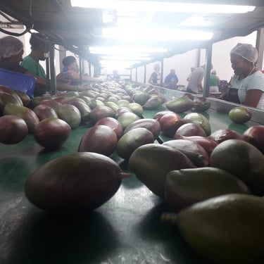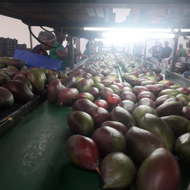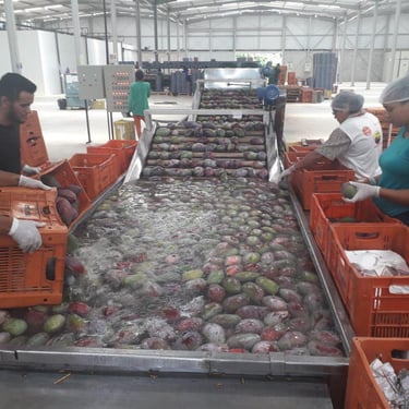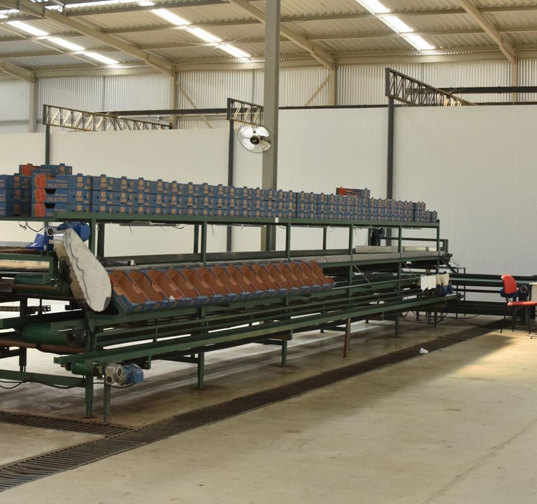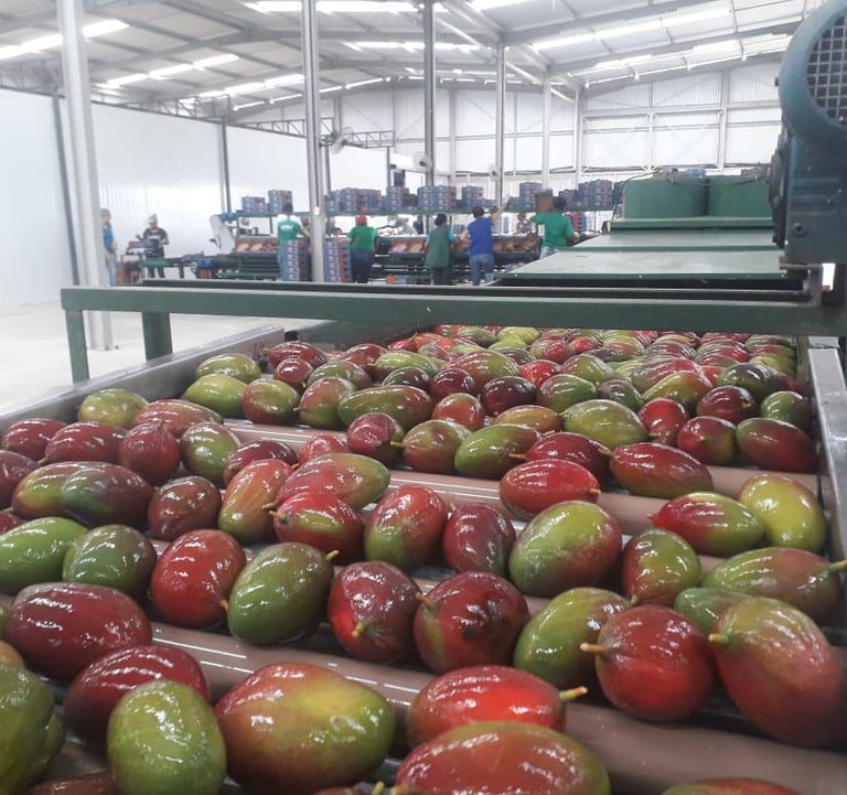 Nosso packing house possui mais de 10.000m² e conta com uma estrutura de classificadora, túneis de resfriamento e câmeras frias que permitem a rastreabilidade de nossos produtos com uma capacidade de processamento 300 toneladas diária de manga.