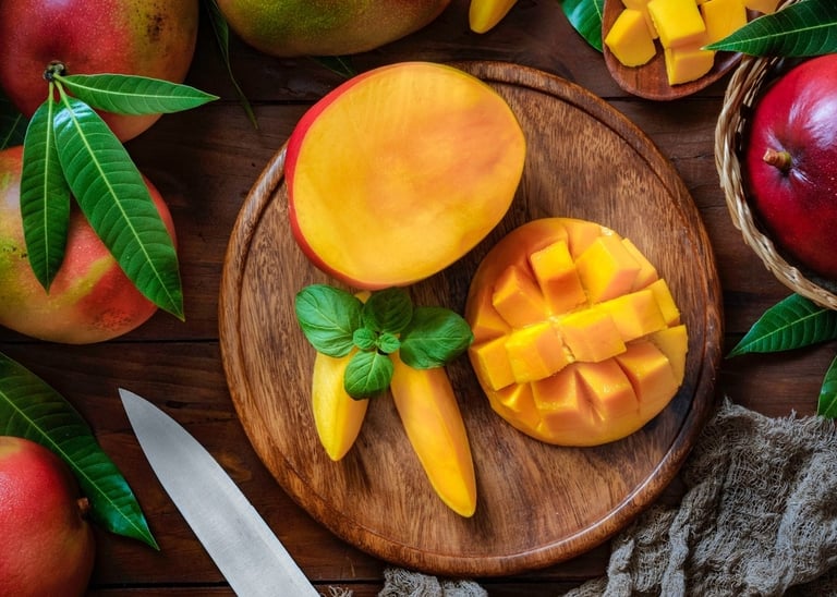 Dicas de amadurecimento:Kents têm meio-tom amarelo ou pontos que cobrem a maior parte da manga quando esta está madura.